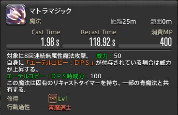 固有のリキャストタイマーを持ち、天使のおやつ、ドラゴンフォースと共有しています。エーテルコピー:DPSならマトラマジックをセットしましょう。