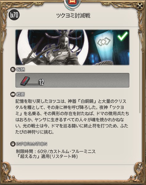 お勧めの場所ツクヨミ討滅戦:ツクヨミ ※ソロ攻略は高難易度。
