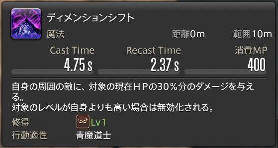 | 威力 | 現在HPの30%ダメージ | 消費MP | 400 |