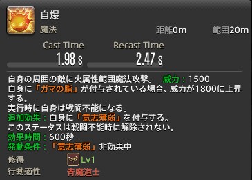 【FF14】青魔道士:No.21 自爆のラーニング方法と性能解説
