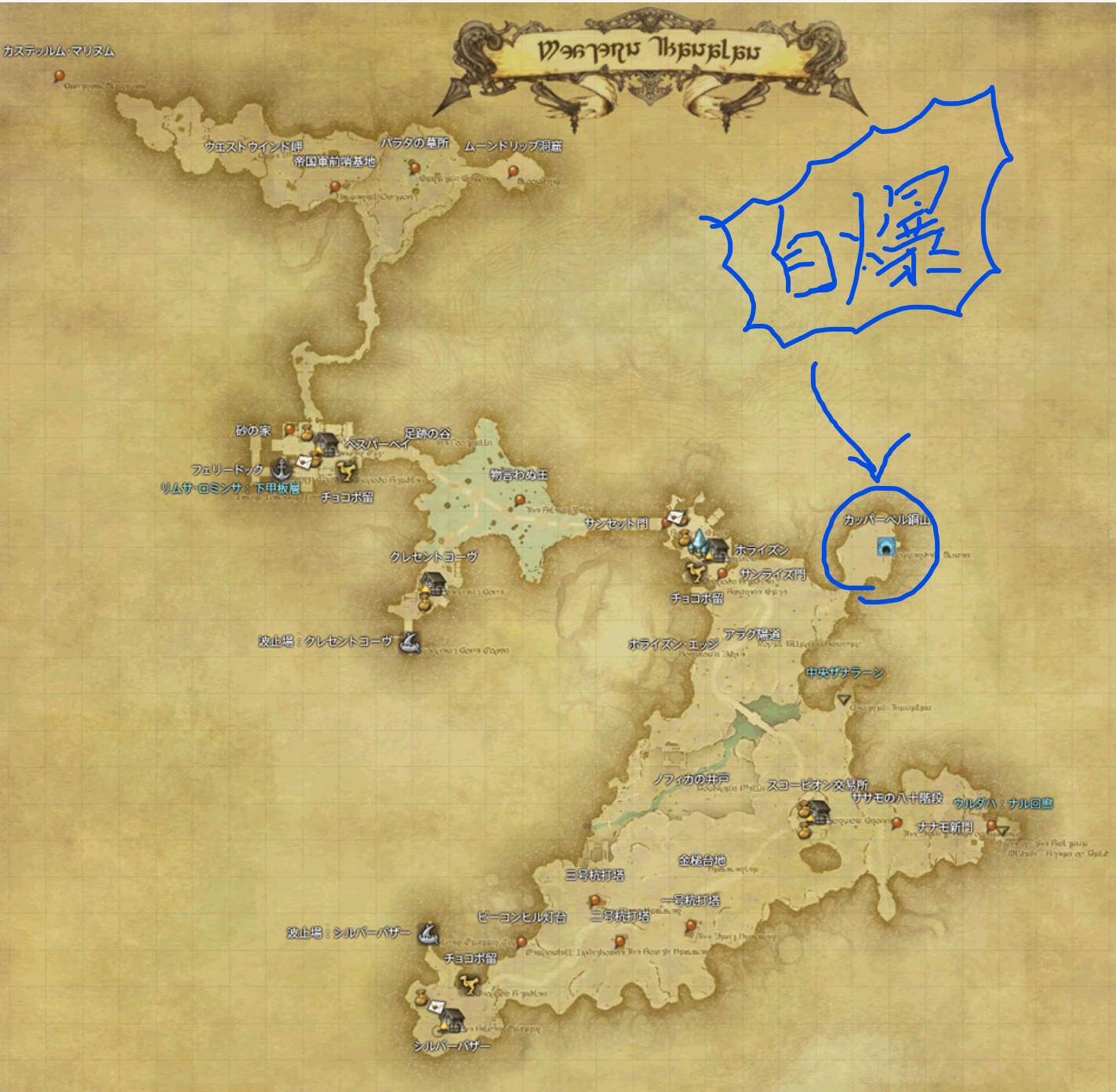 お勧めの場所西ザナラーン カッパーベル銅山入り口 ※高レベルの場合は、オートアタックで弱らせる。大爆発と見間違えないように注意。