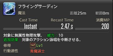 追加効果:対象のアクション詠唱を中断させる。