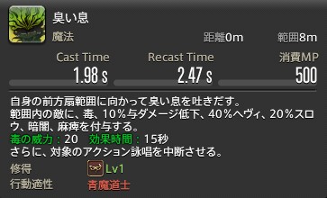 臭い息の詠唱時間があるので、詠唱が長い技に合わせて使えればといったところでしょうか。