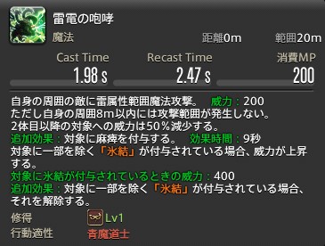 青魔法唯一のドーナッツ円範囲攻撃で、麻痺9秒も付与されます。