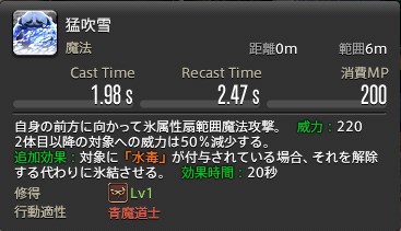 | 特殊効果 | 対象が「水毒」時に「氷結」を付与する 効果時間:20秒 「水毒」解除 |