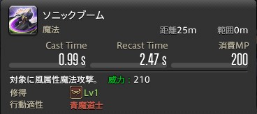 詠唱時間が短く威力も210と高め、射程も25mと長いため、常用技として入れておきたい技です。