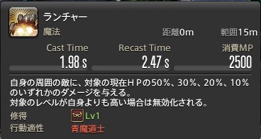 自身の周囲の敵に、対象の現在HPの50%、30%、20%、10%のいずれかのダメージを与える。