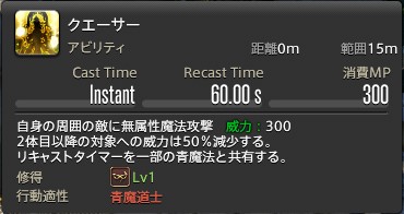 リキャストタイムは60秒なので、リキャスト次第使いましょう。