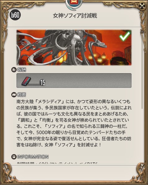 お勧めの場所女神ソフィア討滅戦:ソフィア