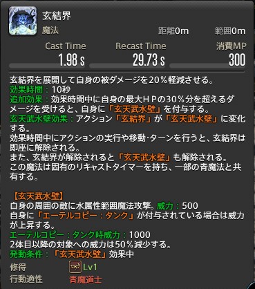 エーテルコピー:タンクの場合、玄天武水壁の威力が1000になります。