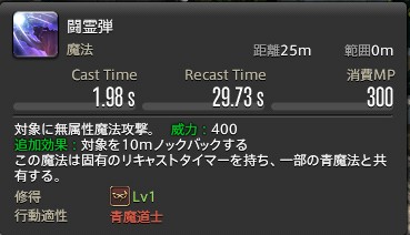 この魔法は固有のリキャストタイマーを持ち、一部の青魔法と共有する。