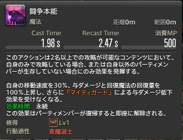 【FF14】青魔道士:No.91 闘争本能のラーニング方法と性能解説