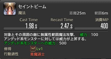 対象と周囲円攻撃で、アンデッド系モンスターに対しては威力が上昇し500となります。